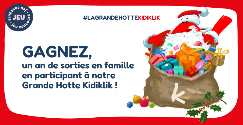 Par ici la magie de Noël avec Kidiklik ! En participant à notre jeu concours "la hotte Kidiklik", tentez de remporter vos sorties en famille pour en profiter tout au long de l'année 2026. À chaque saison, il y a des pépites à découvrir et la hotte de Noël de Kidiklik en est remplie !